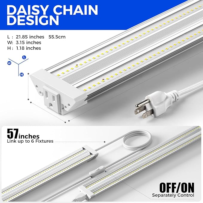 • Easy Installations & Linkable Design: The Barrina TX36 full spectrum grow light supports hanging and surface mounting. With chains, hooks, anchors, cable ties, and clips, installation is quick and easy. Link up to 6 lights with 57 inches cords and individual on/off switches, ensuring comprehensive light coverage for your indoor vegetable garden