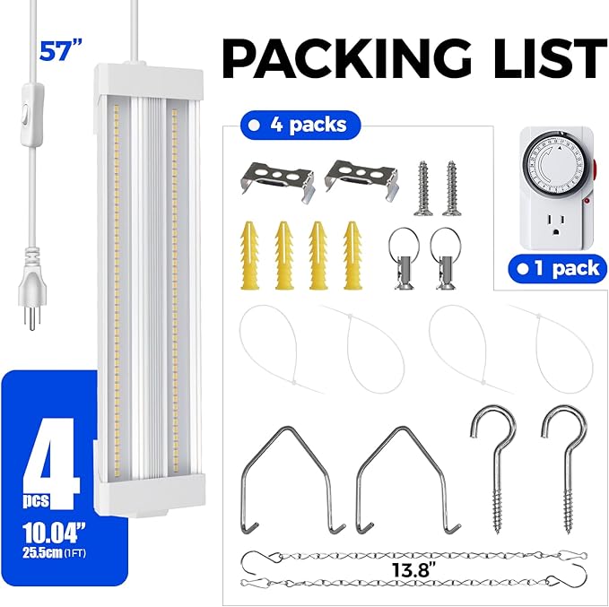 • Easy Installations & Linkable Design: The Barrina TX18 full spectrum grow light supports hanging and surface mounting. With chains, hooks, anchors, cable ties, and clips, installation is quick and easy. Link up to 6 lights with 57 inches cords and individual on/off switches, ensuring comprehensive light coverage for your indoor vegetable garden
