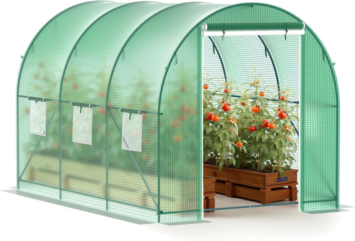 • 【Double Zipper Roll-up Door】The front door of the hoop greenhouse is equipped with 1 screen door to prevent small insects from flying in and harming your plants; another PE door is used for heat preservation.