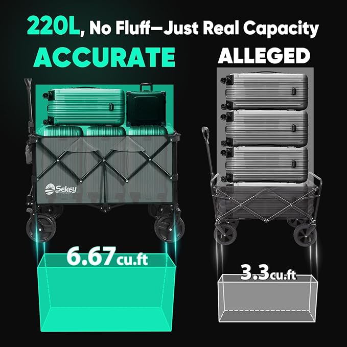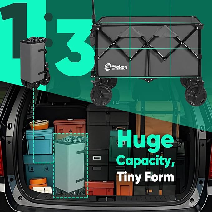 • 【𝐆𝐨 𝐀𝐧𝐲𝐰𝐡𝐞𝐫𝐞 𝐖𝐡𝐞𝐞𝐥𝐬】: Featuring 𝟖" 𝐝𝐢𝐚𝐦𝐞𝐭𝐞𝐫 𝐰𝐡𝐞𝐞𝐥𝐬 𝐚𝐧𝐝 𝟑" 𝐰𝐢𝐝𝐞 𝐭𝐫𝐞𝐚𝐝𝐬, Sekey wagon glides effortlessly over sand and rough terrain. The 𝐚𝐧𝐭𝐢-𝐬𝐥𝐢𝐩 𝐫𝐮𝐛𝐛𝐞𝐫 strip enhances traction and reduces vibrations, while the 𝐛𝐮𝐢𝐥𝐭-𝐢𝐧 𝐛𝐫𝐚𝐤𝐞𝐬 provide reliable stopping power wherever you go.