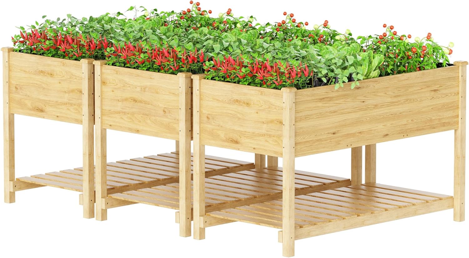 Kullavik 3 pcs Raised Garden Bed with Legs,Outdoor Elevated Cedar Wood Planter Box with Storage Shelf for Vegetables/Flowers/Herbs in Balcony/Backyard/Patio,220lb Capacity-Natural