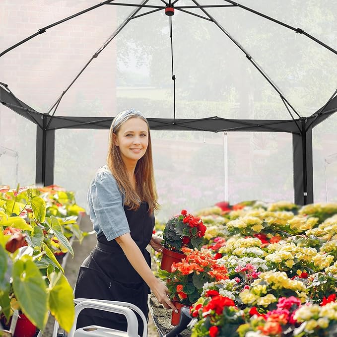 • EASY SETUP: This easy setup pop up greenhouse plant tent features the Peak Push system, a patented greenhouse center lock. The portable greenhouse requires no tools and easily opens and closes from the center in seconds. Its unique greenhouse center lock enables a quick, one person setup, letting you maximize gardening with minimal effort