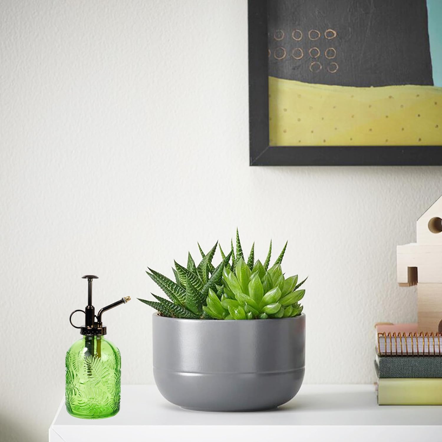 • Size:Measuring 7.6x3 inches with a capacity of 11.8 ounces, this glass watering can is the perfect size and capacity for easy one-handed use.