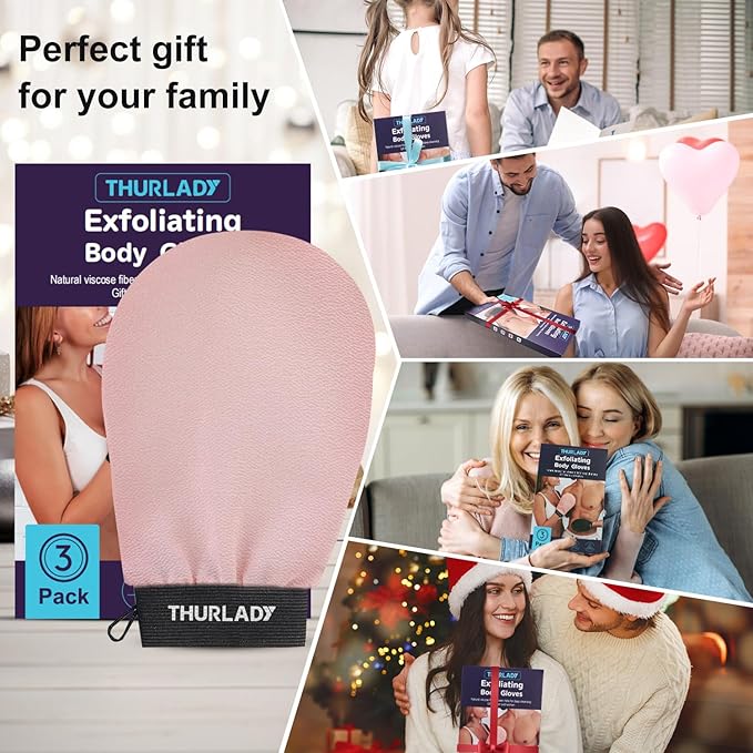 • Achieve Glowing Skin: Use the THURLADY exfoliating glove to gently and effectively remove dead skin cells, leaving your skin feeling softer and smoother. It also helps reduce lumps and ingrown hairs, and improves the absorption of skincare products. Suitable for all skin types, without irritation