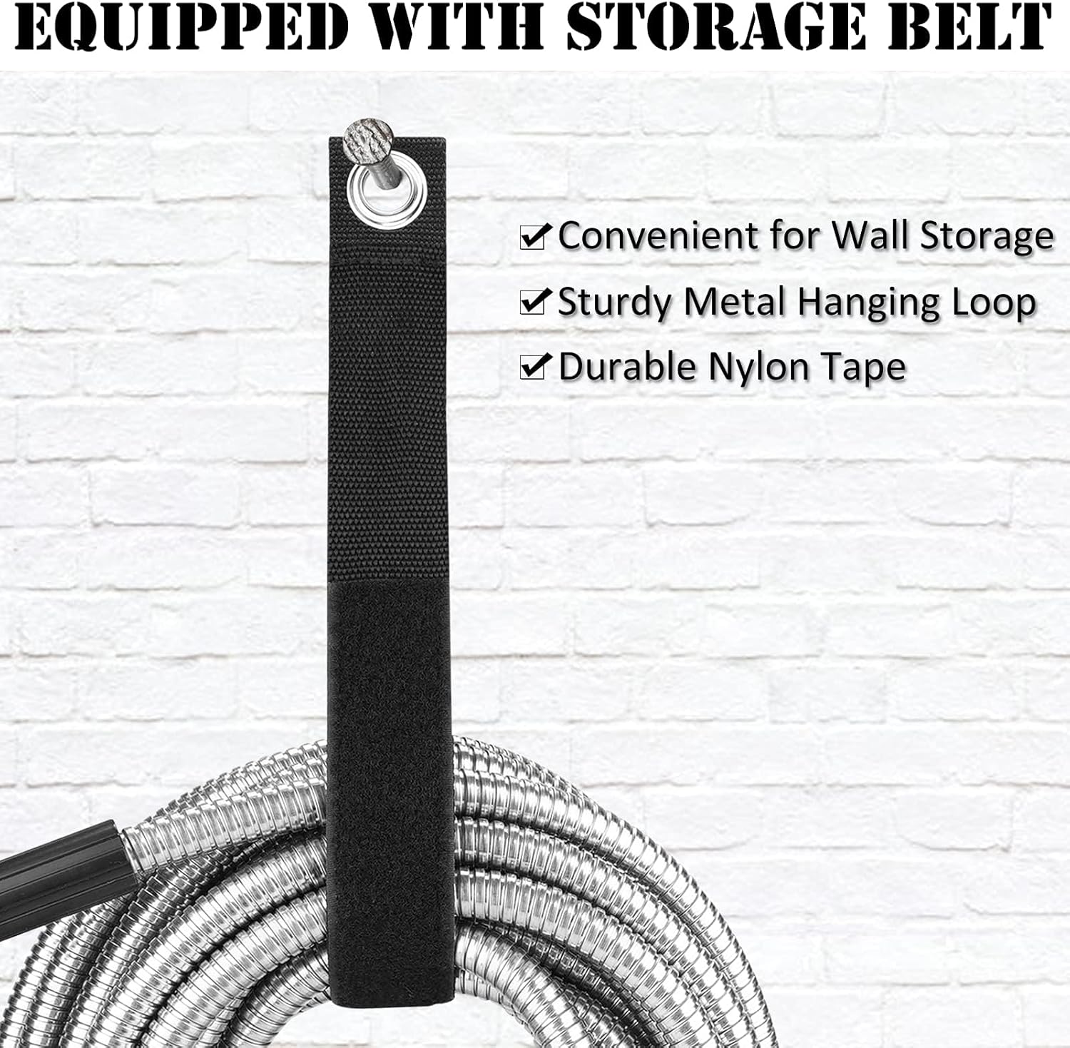 • Thoughtful Accessories: OnBrand outdoor stainless steel hose comes with a handy Velcro strap for quick winding and storage after use. The 4 included rubber washers that effectively prevent leaks and extend the metal hose's lifespan