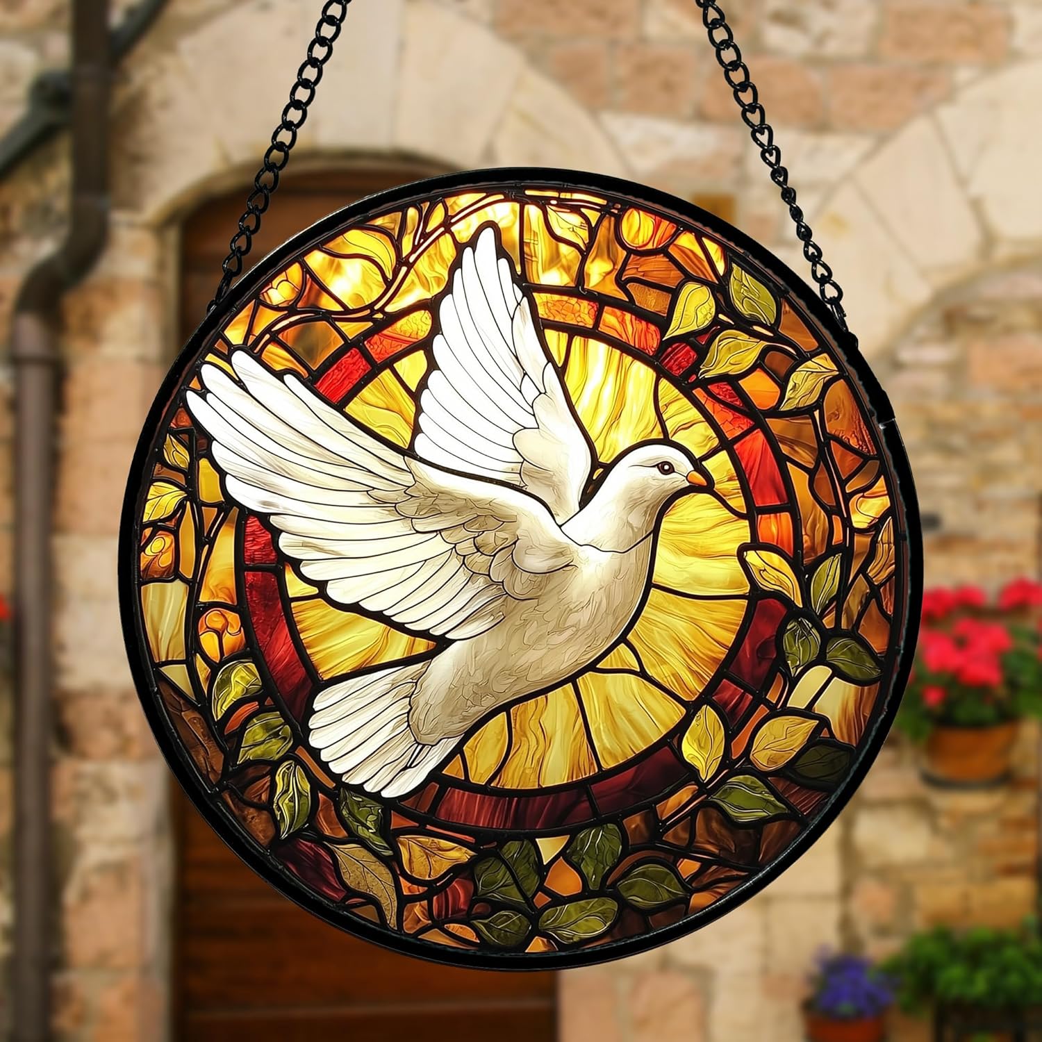 Stained Glass Window Hanging, Flying White Dove Sun Catchers Diamond Glass Panel Hangings Cute Birds Suncatcher Decor for Birthday for Women, Men, Wife, Aunt,and Mom 7.8X7.8IN
