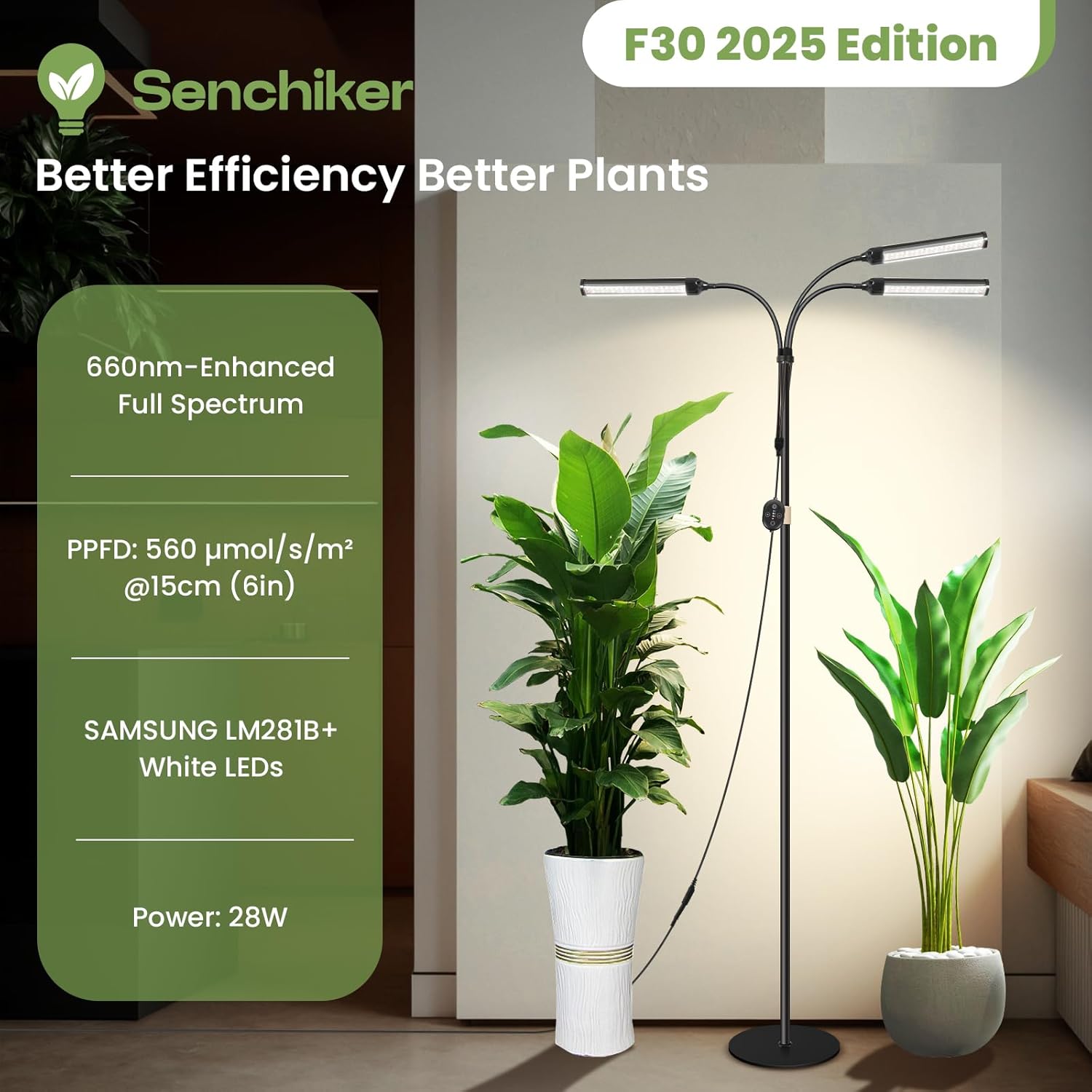 • DESIGNED FOR INDOOR GARDEN PLANTS:Utilizing advanced LED technology, this full spectrum grow light provides 560μmol/s/m²@6in PPFD while consuming only 28W, making it twice as energy-efficient as similar products. Ideal for grow lights for indoor plants, supporting the healthy growth of succulents, aloe vera, devil’s ivy, calibrachoa, and African violets.