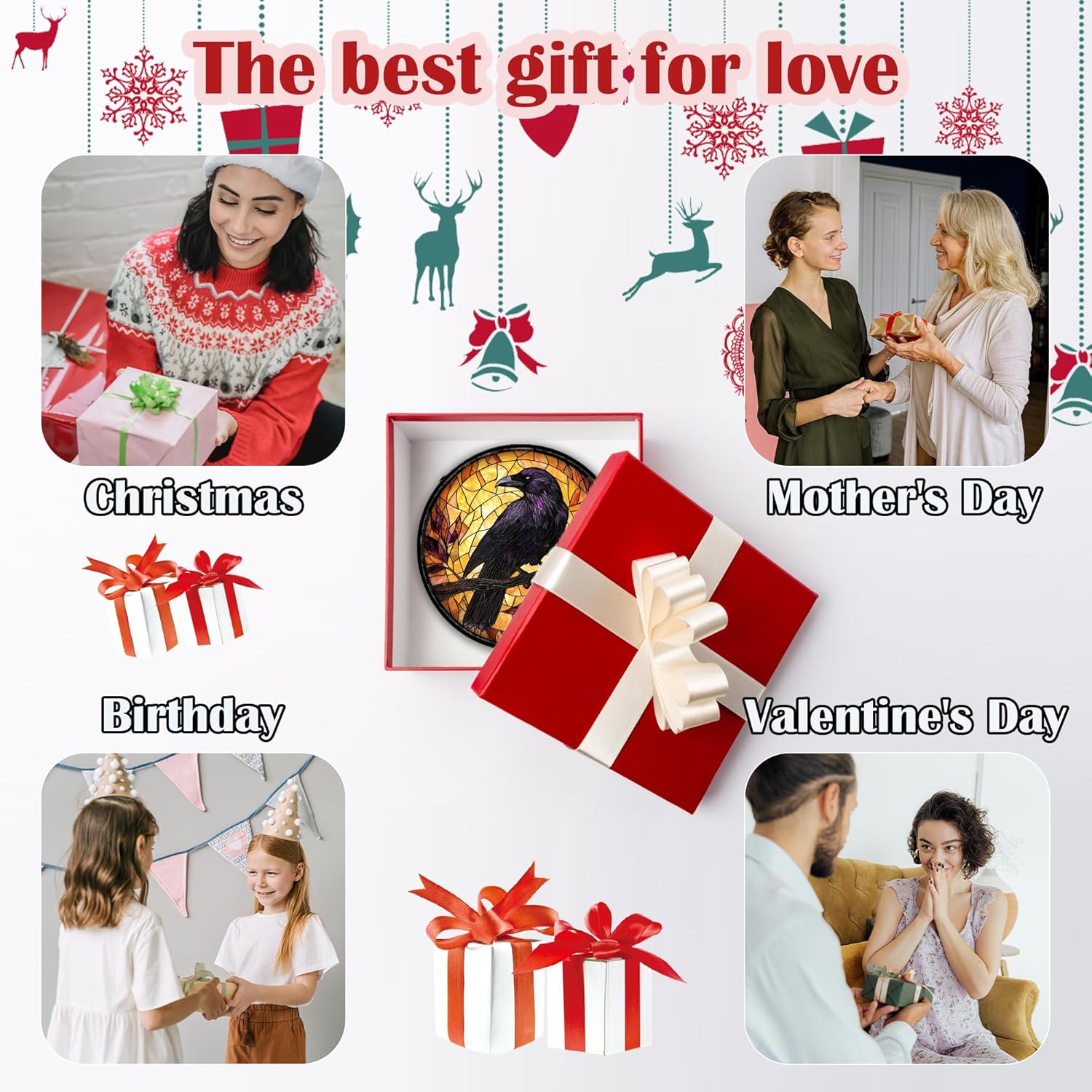 Stained Glass Window Hanging - Crow on a Branch Suncatcher Ready to Hang Window Doors Home Decoration and Christmas, Mother's Day Birthday Gifts for Women, Men, and Mom 6.3x6.3 in