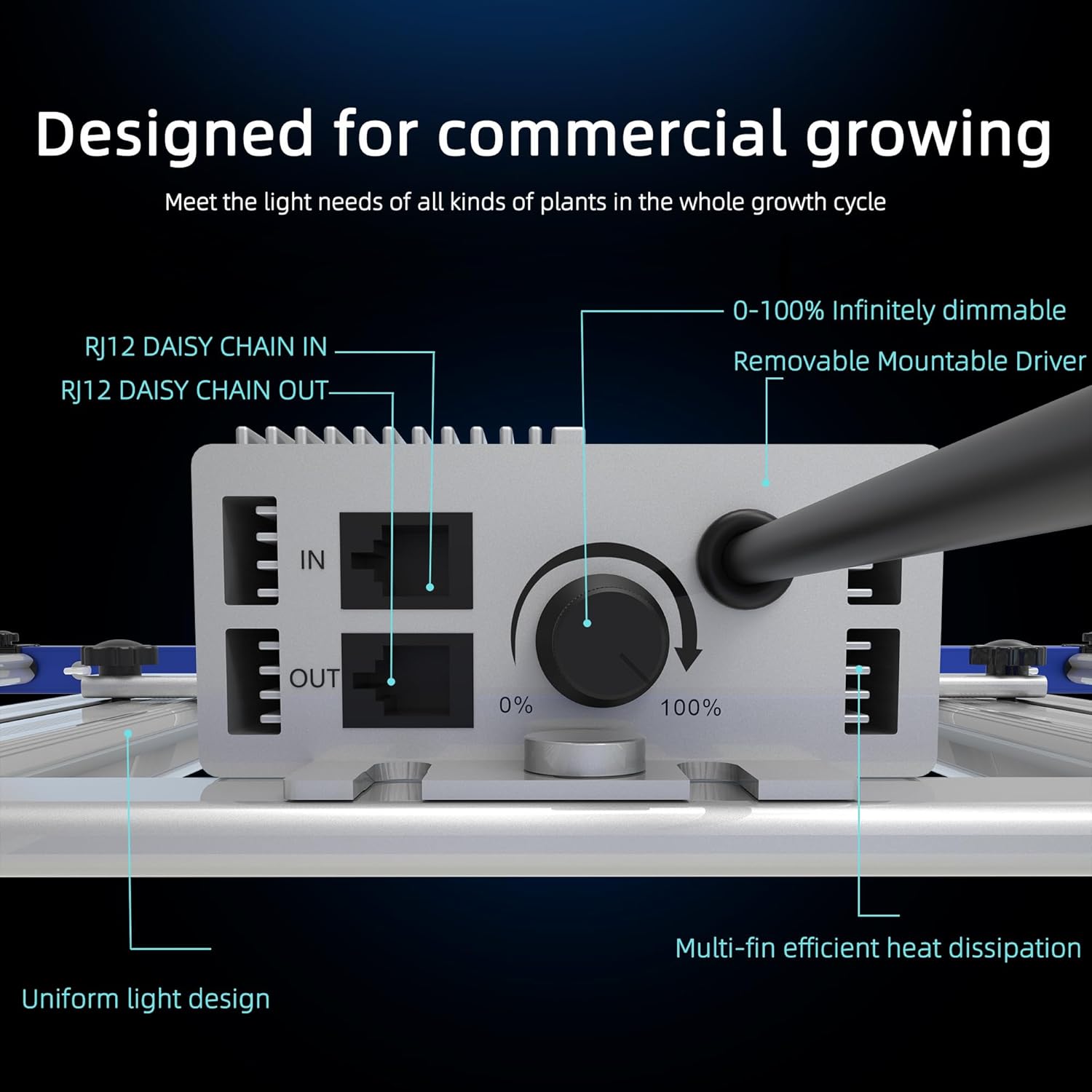 • 【Quiet and light】MaiceMinds MC420 grow light aluminum fins to dissipate heat, which increases cooling efficiency by 300%, and you can still enjoy efficient cooling without fan noise.The MaiceMinds MC420 plant light is fully modularized and modules can be replaced at any time to extend its service life.