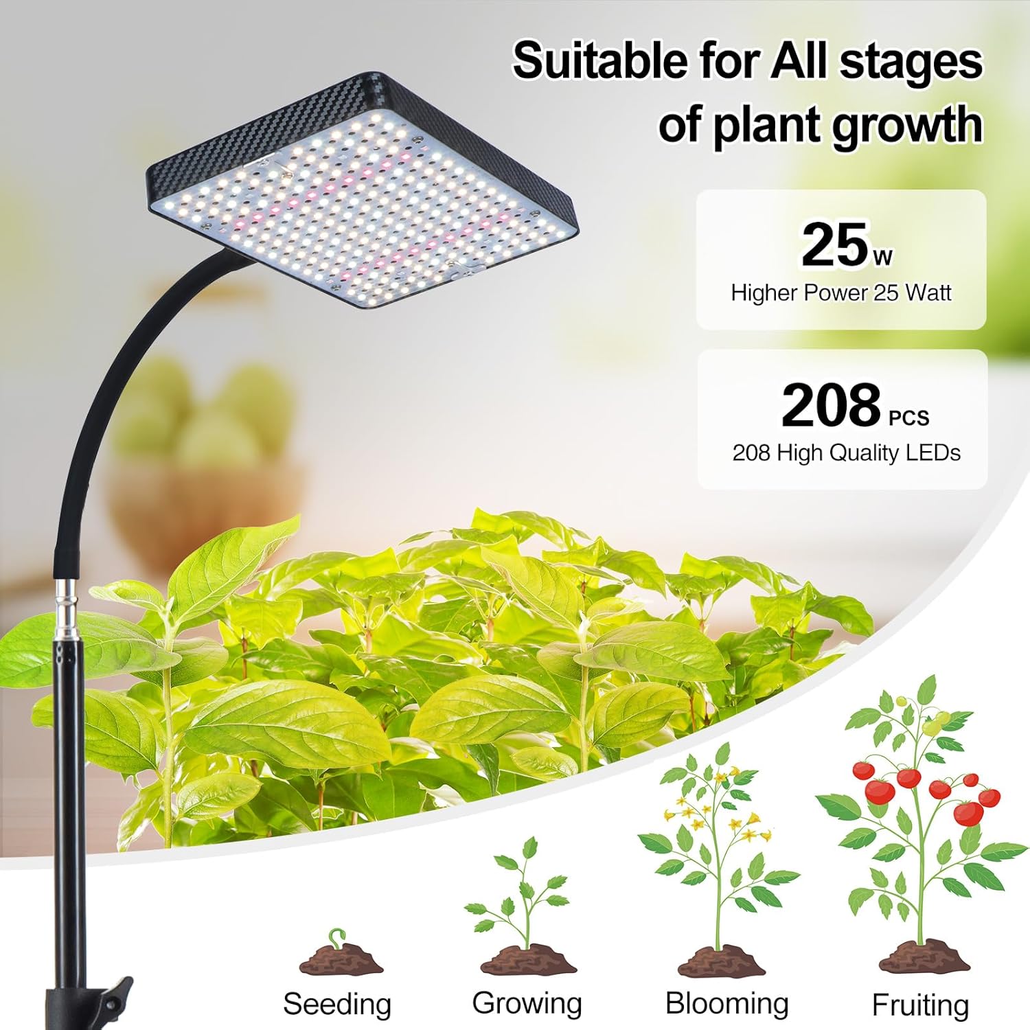 • Bright Enough and Plants Love Grow Light---208 High Quality LEDs Plant Light and 25W Actual Power Full Spectrum Plant Growing Lamps, 2500 Lumin Bright Enough Let Your Indoor Plants Enjoy Sunlight