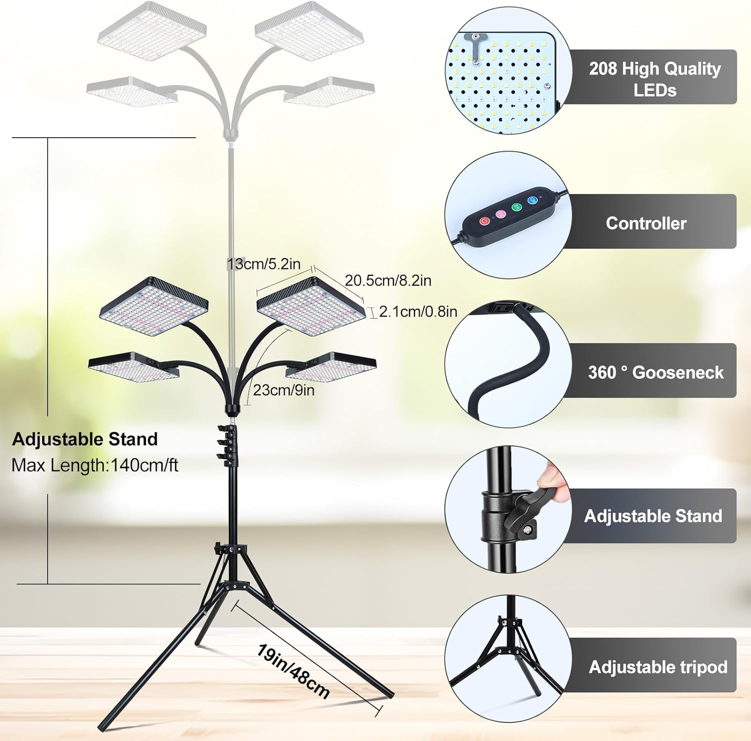• Adjustable Height Strong Stand Grow Light---24"-64" Adjustable Height Stable Base, 360°Gooseneck. Perfect for Tall Bonsai Tree or Seedlings Plants on Floor.