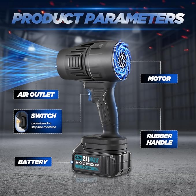• 【High Power Performance】This Saker portable dust cleaner has an amazing speed of up to 180000 revolutions per minute, and its blowing power is 600G, which can complete tasks faster and more efficiently. It can easily clean outdoor space debris such as snow and fallen leaves.