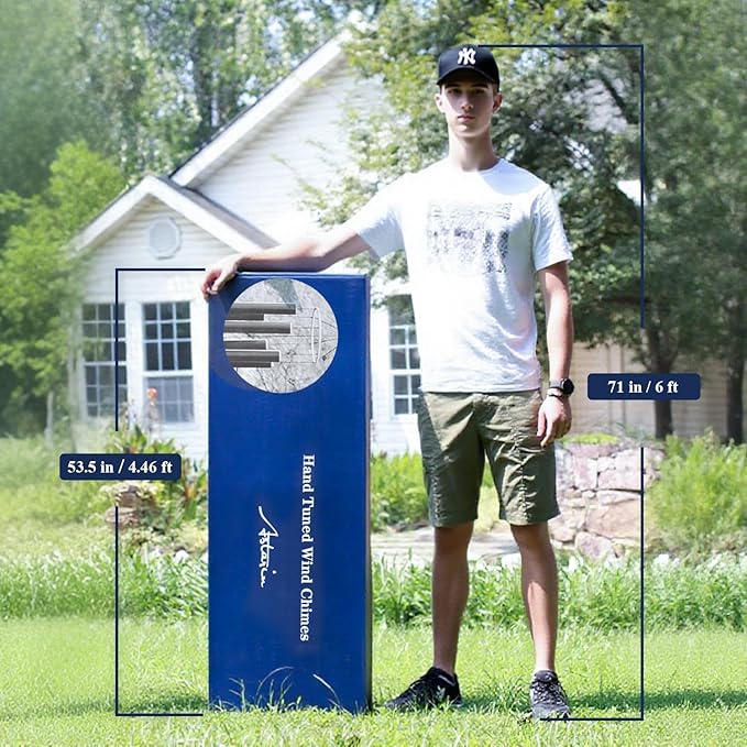 • 78 Inch large Wind Chimes - The longest tube of the large wind chimes is 47.6 Inch,diameter is 2.4 Inch.6 aluminum powder-coated tubes,every metal tube of this large wind chime is hand-tuned by our professional tuning experts to achieve a superior musical performance.Heavy duty nylon cording high density striker for a clear tone and resonances.