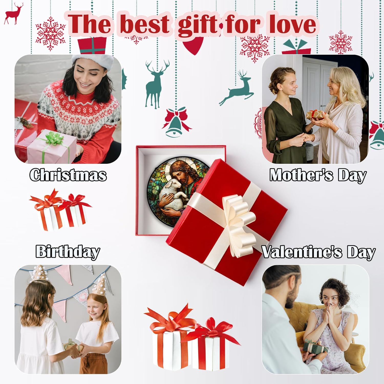 Stained Glass Window Hanging, Jesus Little Lamb Sun Catchers Colorful Glass Panel Christianity Suncatcher Decor for Birthday for Women, Men, Wife, Aunt, and Mom 9.8 in
