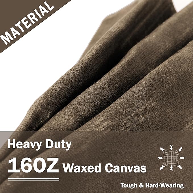 • Reliable Material: Crafted with heavy-duty 16 oz waxed canvas that is abrasion-resistant, and built to withstand tough job sites, keeping your tools safe and secure