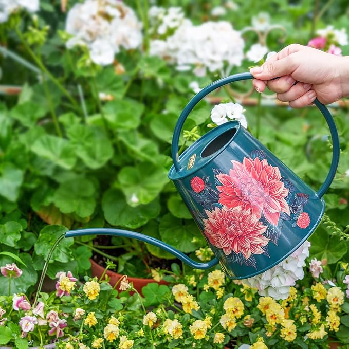 Berry&Bird House Plants Watering Can - Indoor & Outdoor 1/2 Gallon Stainless Steel Water Can with Long Spout Garden Decoration for Flower Bonsai Succulent Gardening Large Watwer Bottle(2L/68oz,Dahlia)
