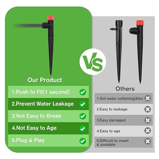 • 【Easy to Use】Drip Irrigation Emitters for 1/4" Drip Irrigation Tubing, is perfect for Garden Irrigation with (4-7mm) Watering System. No need to heat irrigation tubing, easily connects directly to drip irrigation emitters. The drip irrigation heads are removable and easy to clean without worrying about clogging.
