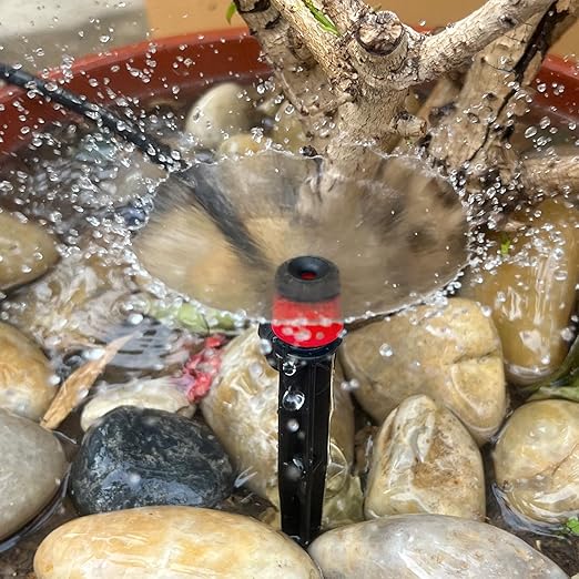 • 【Water Flow Adjustable】Easily adjust water flow from 0 to 23 us gal per hour, and the diameter of sprinkling circle accordingly from 0 to 6.5 feet. No water leakage at the connection and no waste of water resources. Minimize the amount of water loss by watering the roots of the plants with irrigation sprinkler heads.