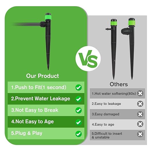 • 【Easy to Use】Drip Irrigation Emitters for 1/4" Drip Irrigation Tubing, is perfect for Garden Irrigation with (4-7mm) Watering System. No need to heat irrigation tubing, easily connects directly to drip irrigation emitters. The drip irrigation heads are removable and easy to clean without worrying about clogging.