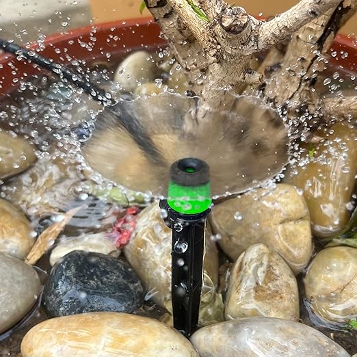 • 【Water Flow Adjustable】Easily adjust water flow from 0 to 23 us gal per hour, and the diameter of sprinkling circle accordingly from 0 to 6.5 feet. No water leakage at the connection and no waste of water resources. Minimize the amount of water loss by watering the roots of the plants with irrigation sprinkler heads.