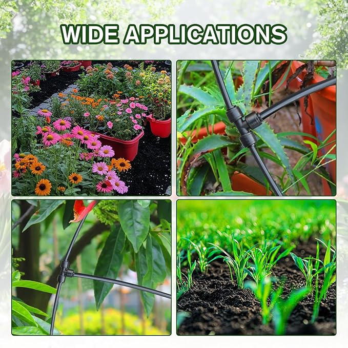 • Leak-Free Performance: Our 1/4" quick drip irrigation fittings are made of premium quality plastic with high-strength leak-proof seals to ensure a tight fit with the push-on connection, which can withstand harsh outdoor conditions and is resistant to deformation, cracking and abrasion.