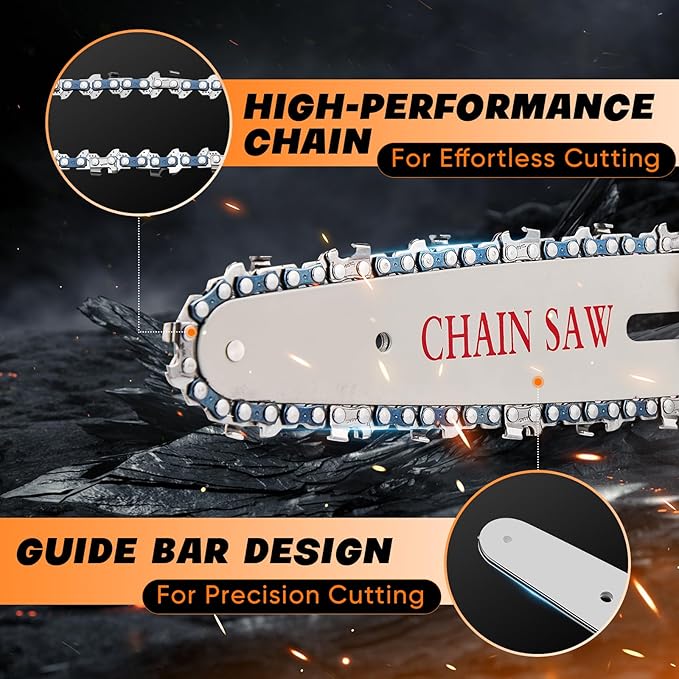 - Strong Dynamic System - Saker Mini Chainsaw adapts a high-quality guide chain that has undergone a deep quenching process to ensure smooth cutting.Whether you're cutting firewood, trimming branches, or resizing boards, you can expect a quick, flat cut every time.