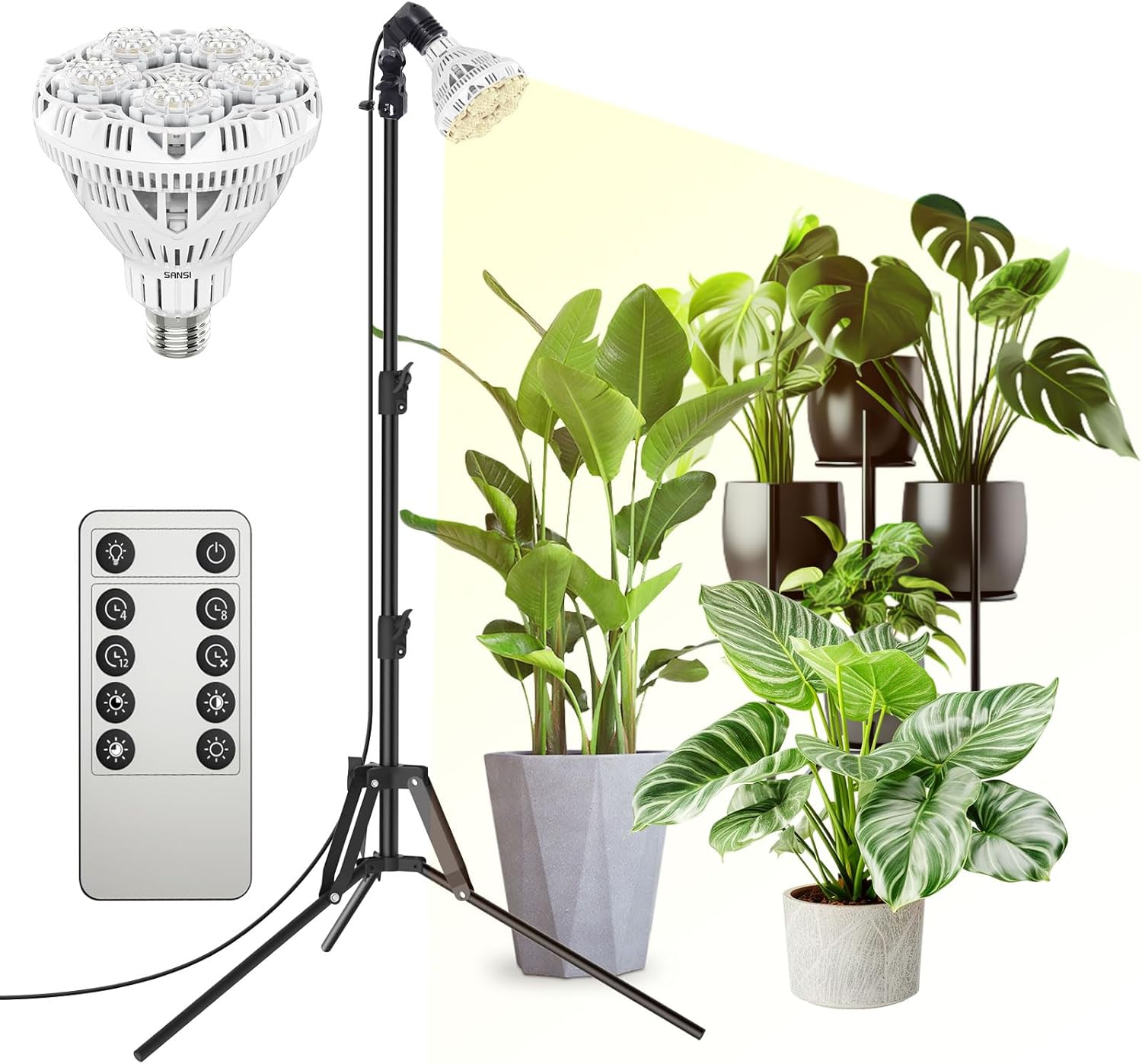 SANSI Grow Lights for Indoor Plants, 4 Dimmable Levels 30W Full Spectrum Plant Lights for Indoor Growing, Tripod Stand Adjustable 30"-55" Plant Grow Light with Remote Control Auto Timer
