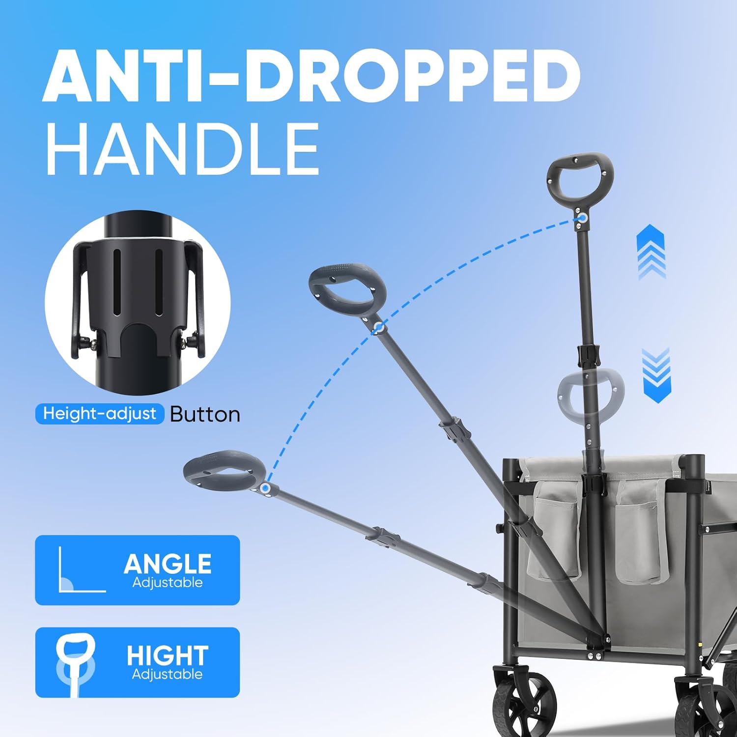 Sekey Heavy Duty Wagon with Big Wheels, Foldable Cart with 220LBS Capacity, Utility Lightweight Wagon, Collapsible Grocery Shopping Cart for Camping Sports & Holiday. Gray