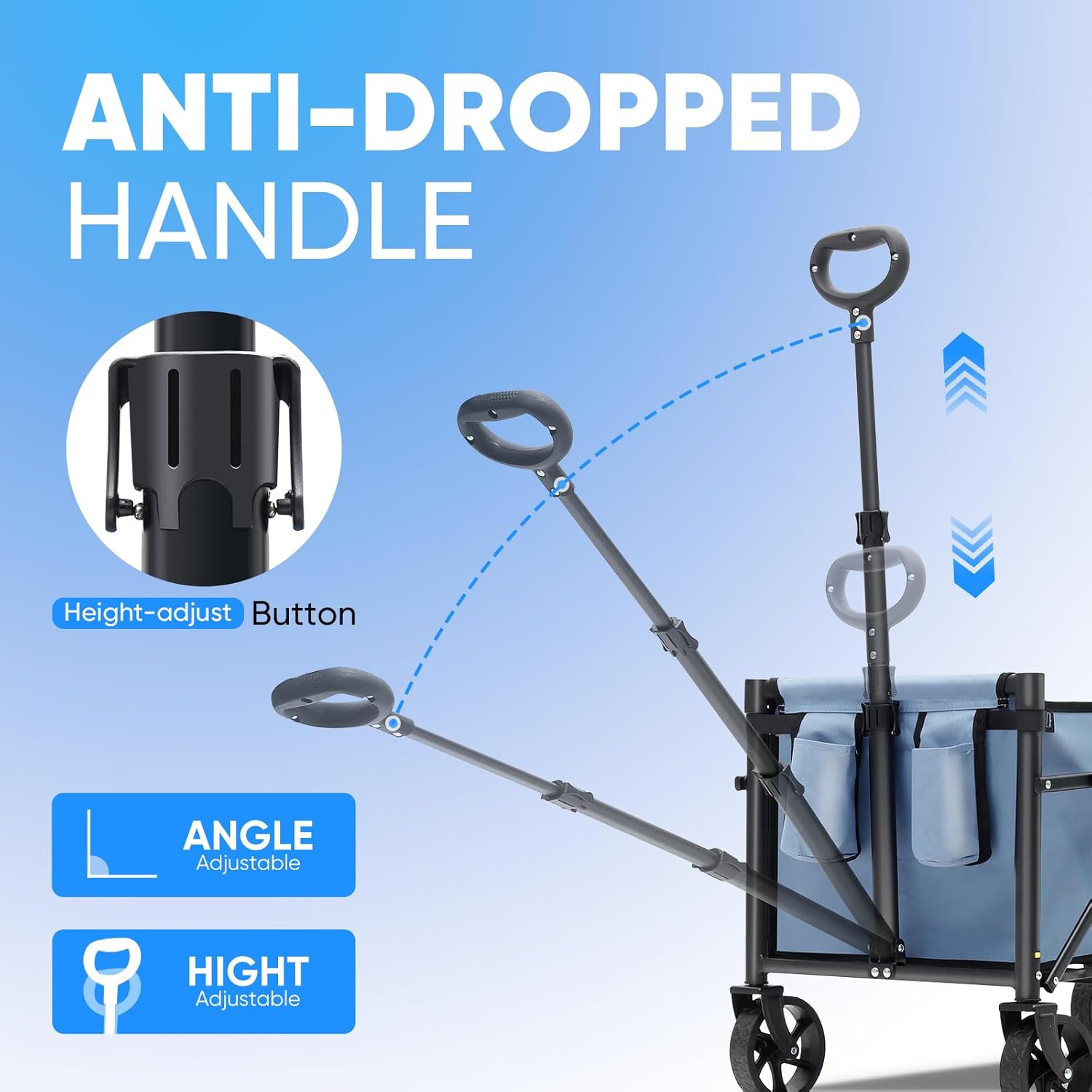 Sekey Heavy Duty Wagon with Big Wheels, Foldable Cart with 220LBS Capacity, Utility Lightweight Wagon, Collapsible Grocery Shopping Cart for Camping Sports & Holiday. Blue