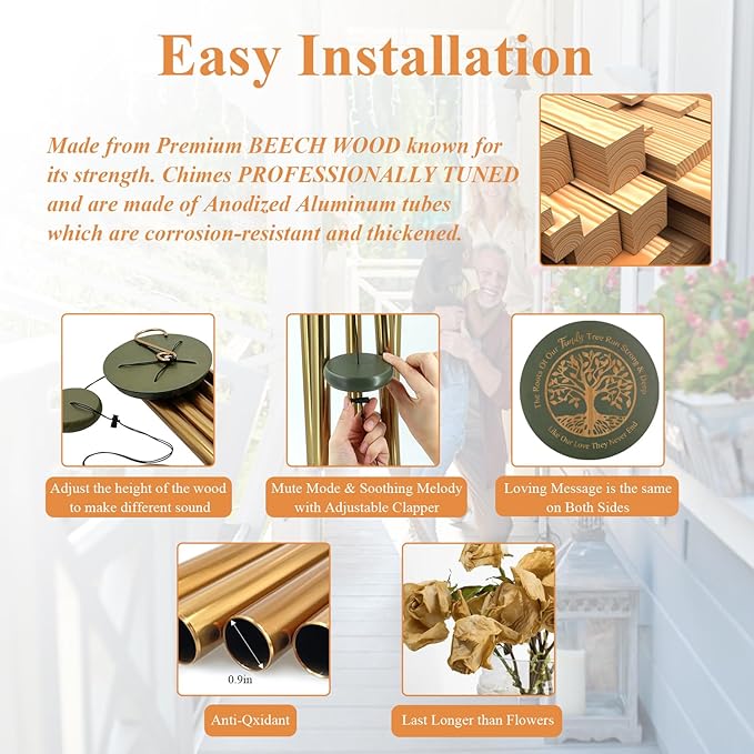 • Premium Sound Quality for Emotional Healing--Professionally tuned 5-metal tubes deliver deep, soothing tones that resonate like a calming melody. Thickened aluminum tubes and a dense wood striker ensure long-lasting, rich sound—ideal for creating a serene atmosphere in gardens or yards.