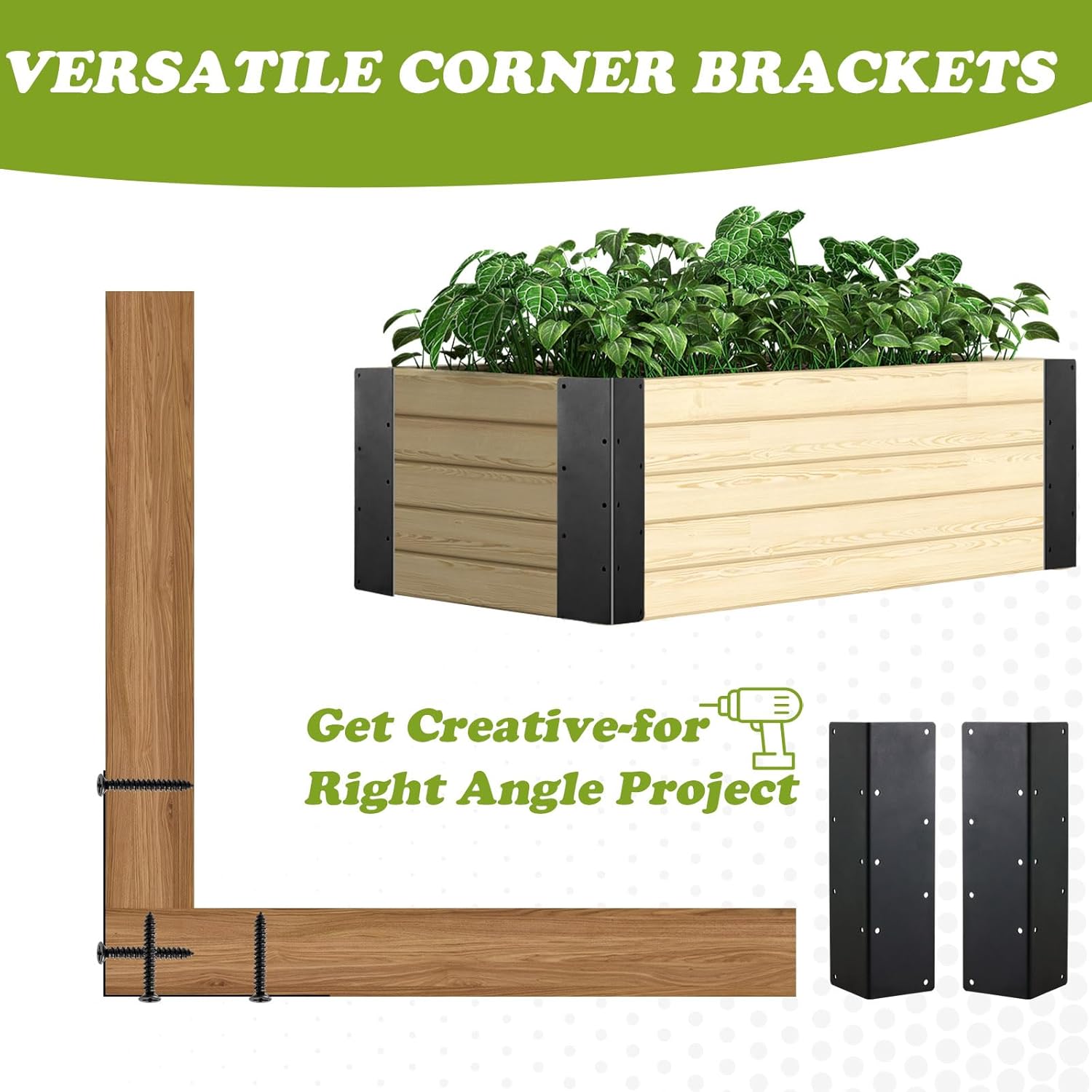 • Easy Installation: Each set includes two types of screws (1.5 inches and 1 inches). Simply position the wooden boards within the metal brackets for wood, attach them using the included screws, and effortlessly assemble your raised garden bed.