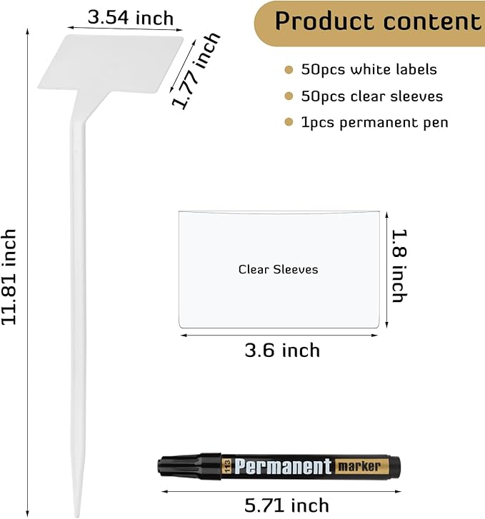 • GREAT VALUE PACK: Include 50pcs plant labels, 50pcs Plastic sleeves bonus a marking pen for you, which could help you mark sorts of plants, seeds,or vegetables with the garden markers.