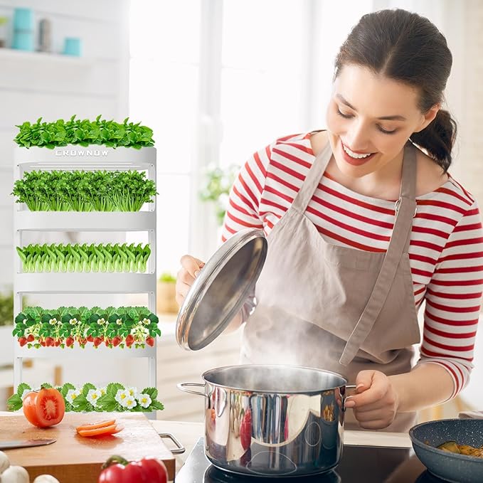 • 【Silent Design&Easy to Assemble】Indoor garden kit have advanced silent technology to operate silently.5-layer hydroponics growing system are 14.17 x 26.8 x 50.3 inches,easy to set up.Each layer has a fixed height of 7.7 inches,accommodates plants at various heights