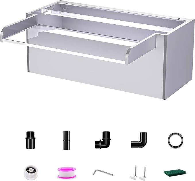 • 【One Year Replacement Committment】- This elegant cascading water feature requires a separately obtained pump for operation. We stand behind our products, and our dedicated support team is available to address inquiries regarding this product, offering prompt responses within a day. Please browse our other products for pool fountain accessories in our store. Waterfall only. LED light strips additional purchase.