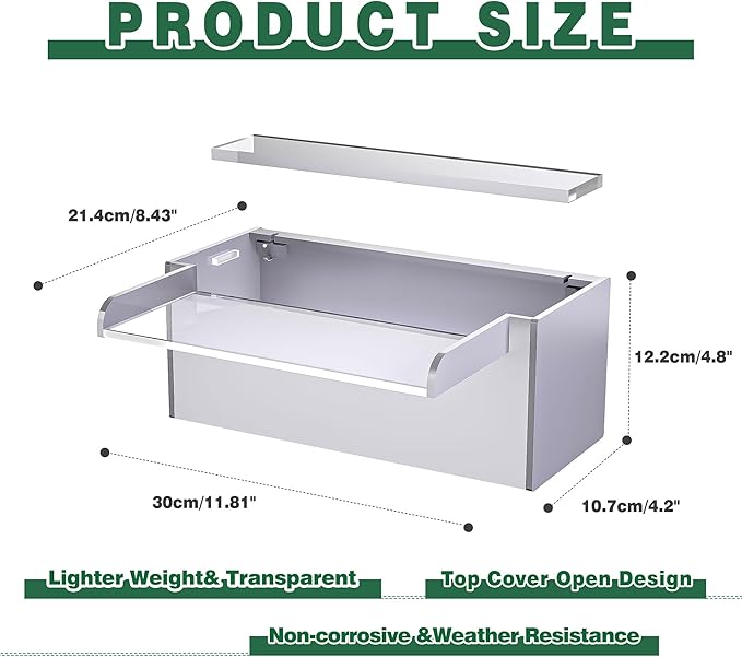 • 【Upgrade High Quality Acrylic】 - Constructed from durable, leak-proof acrylic that is rust-proof, this waterfall fountain has a sleek, modern design. The high quality material ensures long-lasting beauty and enjoyment, creating an elegant and beautiful fountain effect for your garden, swimming pool, or pond. LED light strips not included, but available separately.