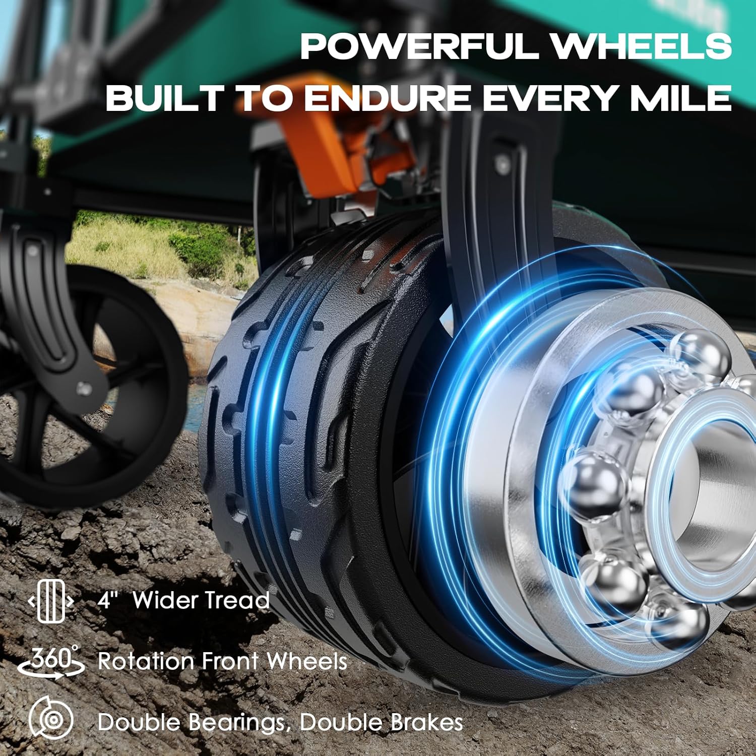 • 【Extra Wide All Terrain Wheels】 Our Wagon is equipped with dual bearing all terrain tank wheels, which can handle most of the terrain! The front wheels are also equipped with dual brakes to give you the ultimate peace of mind! Note: Tank wheels are not suitable for soft sand.
