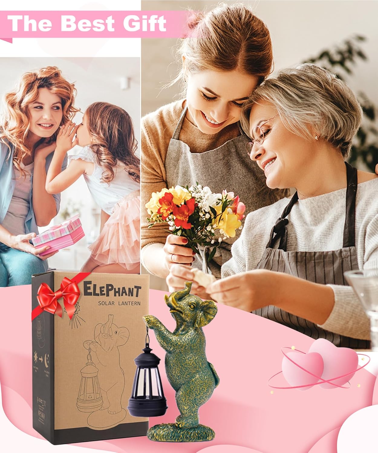 Solar Elephant Garden Statues for Outdoor: Outside Sculpture Lantern Decor for Yard Lawn Porch Patio Balcony Decorations Gifts for Grandma Mom Women