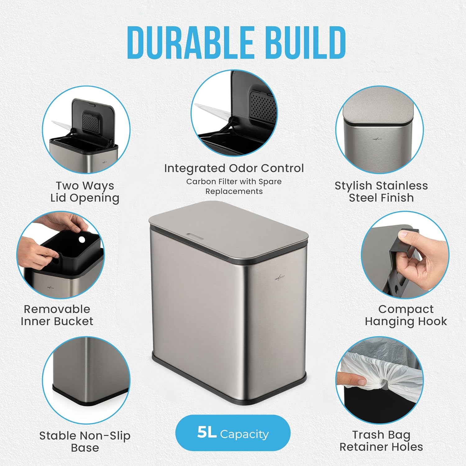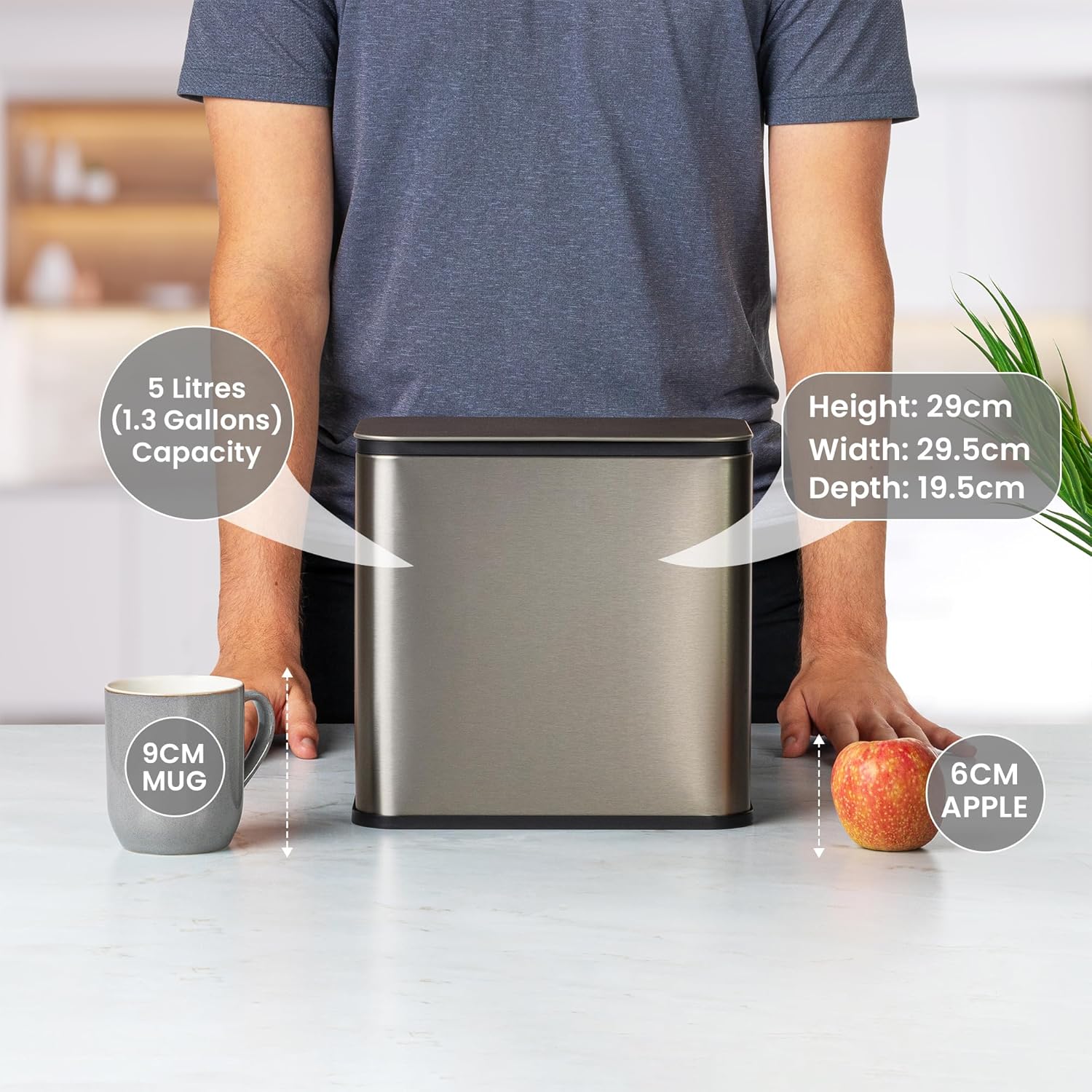 • Practical and Durable – This 1.3-gallon compost bin is built to last, featuring a rust-resistant stainless steel body that resists cracks, chips, and stains while offering a sleek, premium appearance. Perfectly sized for daily food waste, it’s ideal for households looking to manage compostable materials efficiently without taking up too much space.