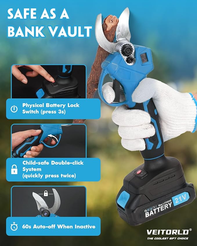 • VERSATILE GARDENING TOOL and GIFT: Perfect for home garden trimming, fruit orchard maintenance, park landscaping, and professional gardening services; cordless pruning shears set is excellent christmas gifts for men, dad, husband and gardening enthusiasts who value quality and convenienc