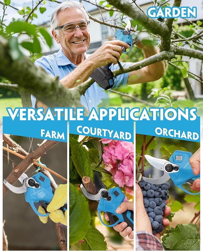 • UP TO 30mm CUTTING:Quickly and cleanly trim branches without damage. SK5 steel blades and a brushless motor ensure sharpness and durability for cutting 1.2 inch branches. Ideal for gardens, parks, farms, and orchards, perfect for grapevines and fruit tree