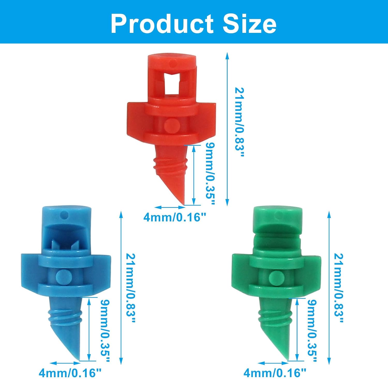 • Package Included: You will get 25 pcs blue 90° misting sprinklers, 25 pcs green 180° misting sprinklers and 25 pcs red 360° misting sprinklers, can meet the irrigation needs of a variety of plants, suitable for micro-spray, drip sprinkler and irrigation injector.