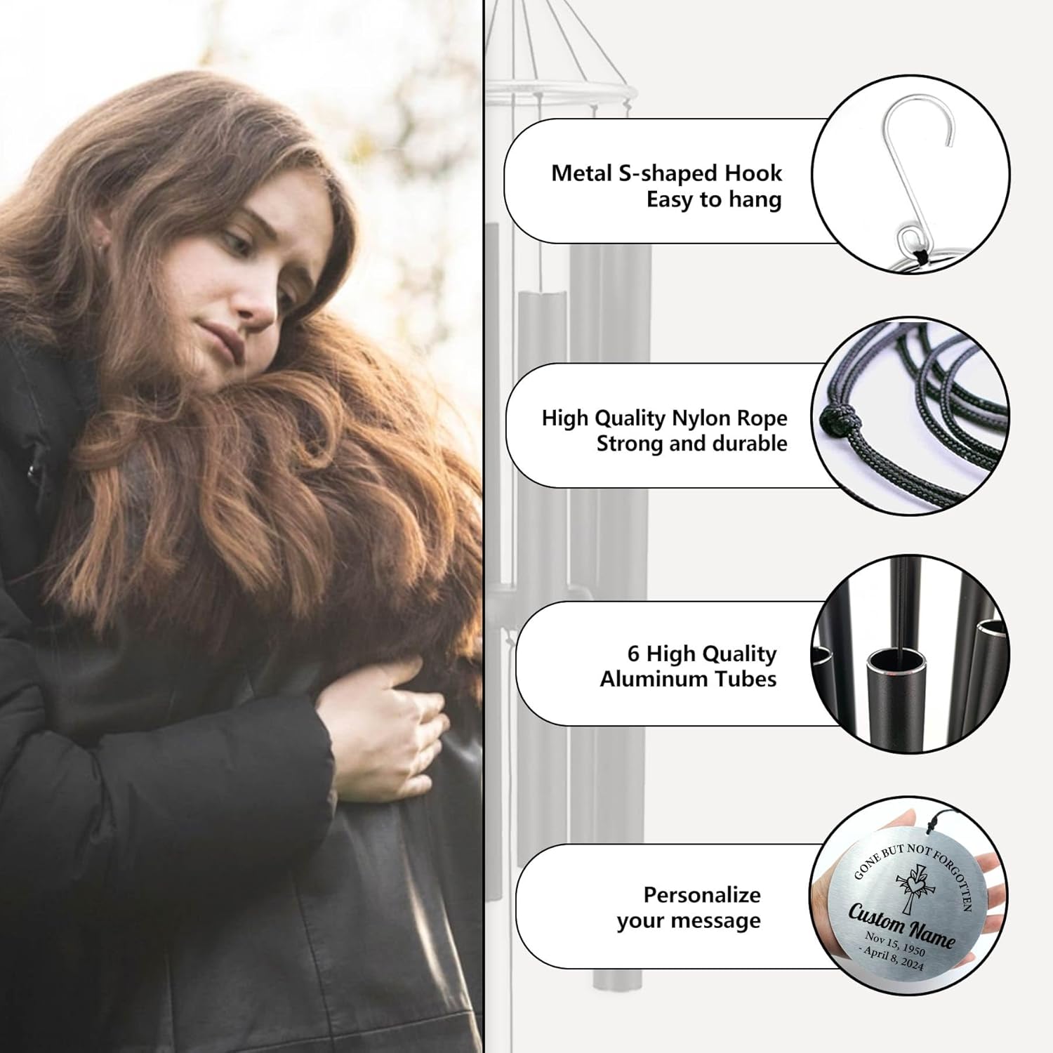 Pwesionalized Sympathy Wind Chimes 36 inch, Memorial Gift for Loss of Mom/Dad/Grandma/Loved one, 42inch Customized Bereavement Gift Idea for Condolences Funeral