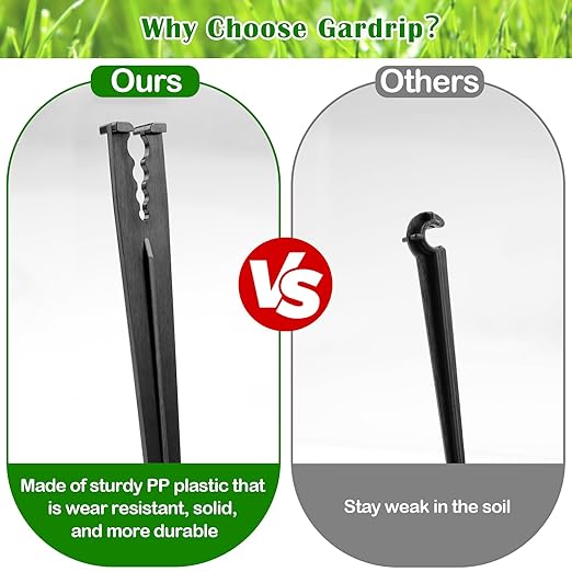 • Practical Drip Irrigation Support Stakes: Keep your 1/4 inch drip tubing and drip emitters in place with our universal drip tubing holder stakes. These irrigation stakes elevate your drippers off the ground to prevent clogging and minimize tripping hazards by securely anchoring your irrigation hoses