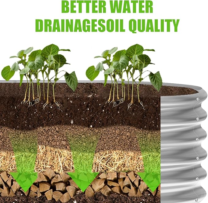 • Moisture-Resistant and Durable: Our galvanized steel raised garden bed offers superior zinc coating for enhanced protection against rust, crafted from premium galvanized steel for unparalleled durability and resistance to corrosion. Engineered for optimal plant health, the high-quality galvanized material also reduces the risk of root rot and improves soil quality.