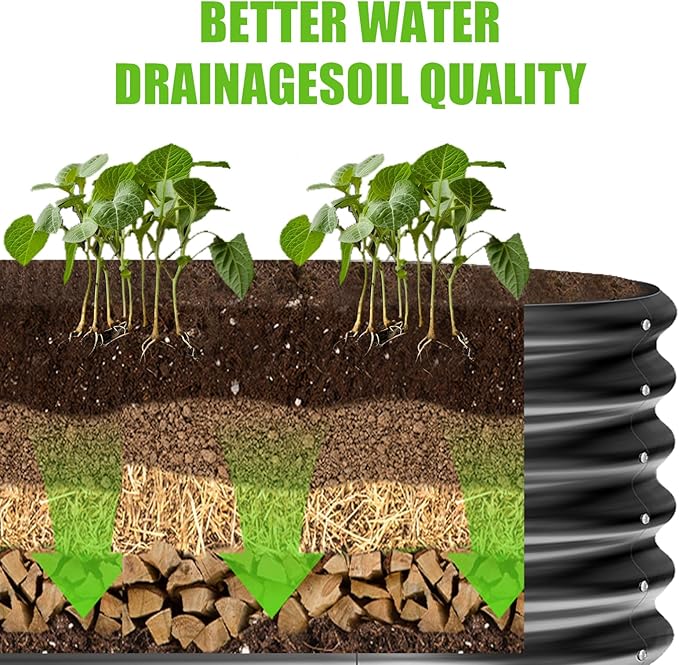 • Moisture-Resistant and Durable: Our galvanized steel raised garden bed offers superior zinc coating for enhanced protection against rust, crafted from premium galvanized steel for unparalleled durability and resistance to corrosion. Engineered for optimal plant health, the high-quality galvanized material also reduces the risk of root rot and improves soil quality.