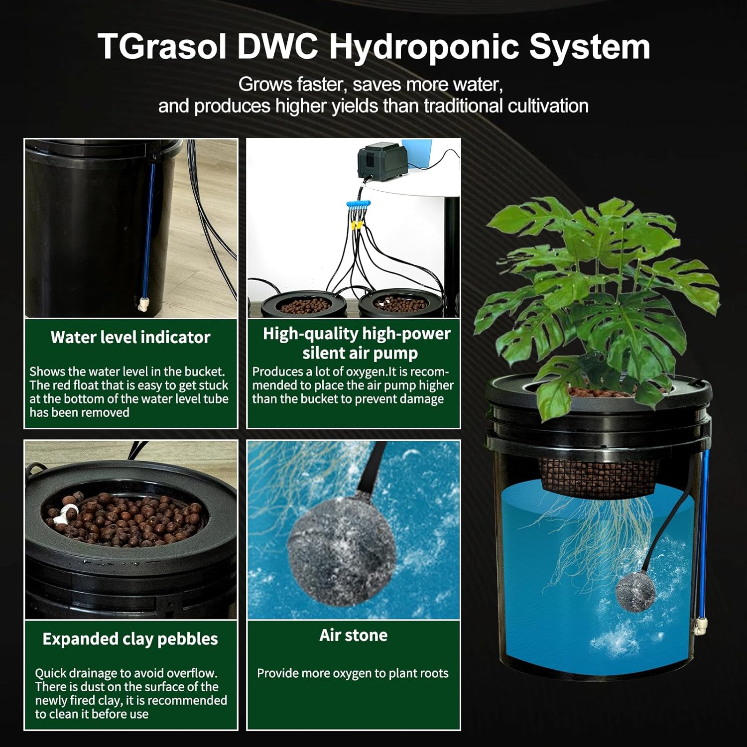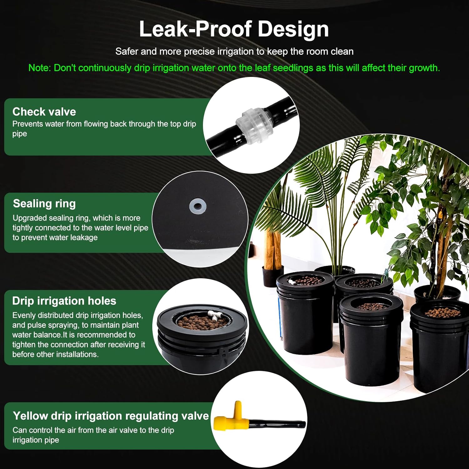 • 【Premium Leak-Proof Protection】Designed with a high-quality seal ring and check valve, our hydroponic system kit prevents leaks and backflow. With only one hole in the bucket, it’s safe for indoor hydroponics and outdoor gardening