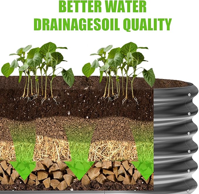 • Moisture-Resistant and Durable: Our galvanized steel raised garden bed offers superior zinc coating for enhanced protection against rust, crafted from premium galvanized steel for unparalleled durability and resistance to corrosion. Engineered for optimal plant health, the high-quality galvanized material also reduces the risk of root rot and improves soil quality.