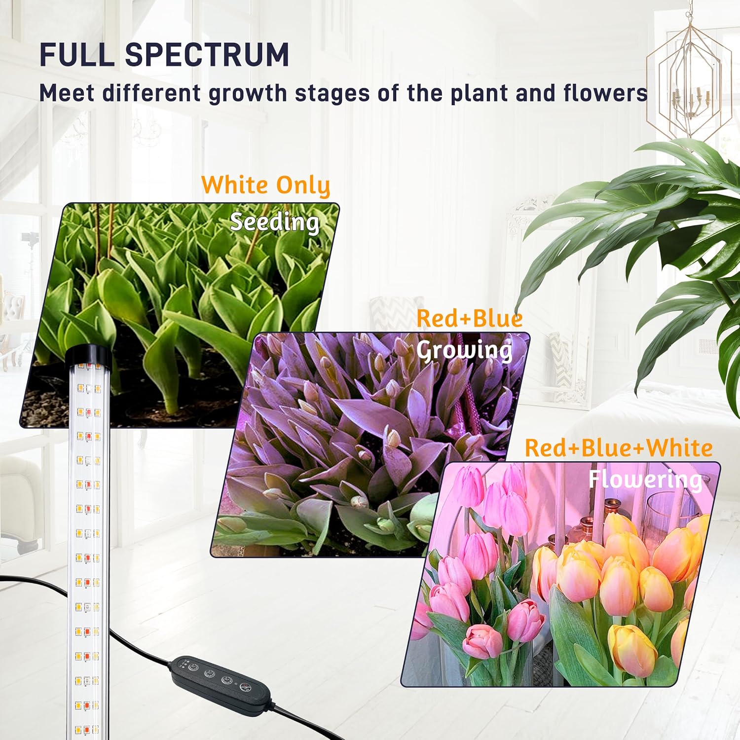 • High-Output Effective Spectrums: The full spectrum grow light has three distinct light spectrums:full-spectrum sunlight, warm yellow light, and cool purple light(Red+Blue), up to 42watts with 243pcs LEDs (54 pcs powerful red LEDs, 27pcs efficient blue LEDs and 162pcs energy-efficient warm white LEDs), it delivers high-output Illumination tailored for various stages of plant development