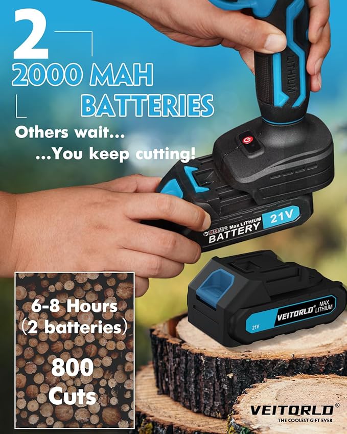 • LONG BATTERY LIFE:Equipped with 2 x 21V, 2AH lithium batteries for extended use. Quick 1-2 hour charge and spare batteries allow for 6-8 hours of work, cutting over 1,000 branches. Ideal for maintaining your garden during the busy summer season