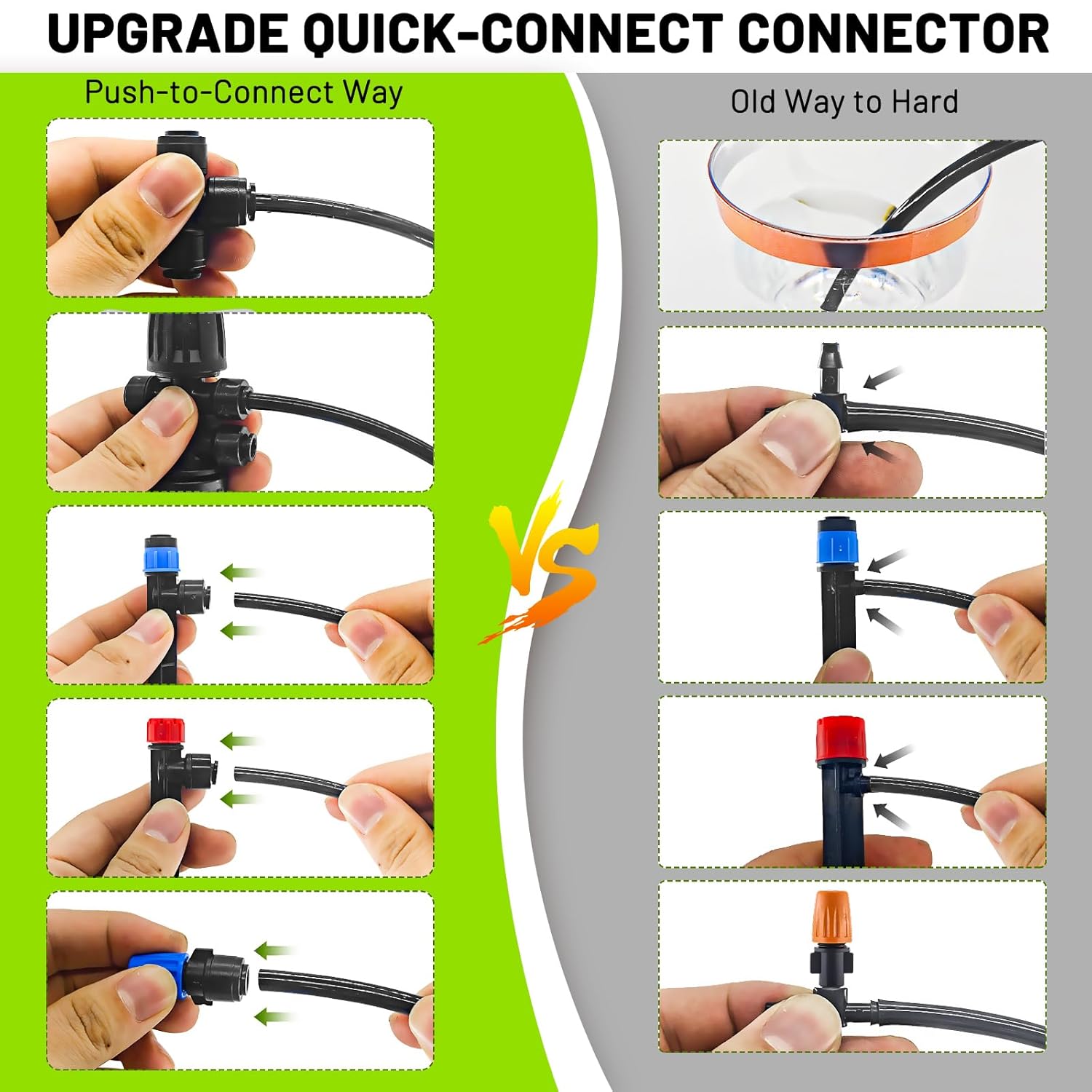 • Save Up to 75% Water: With 40FT of mainline and 200FT of branch tubing, customize your irrigation layout to fit any garden design. The innovative locking nozzles ensure leak-free performance even under high water pressure . Enjoy efficient water distribution with minimal pressure loss